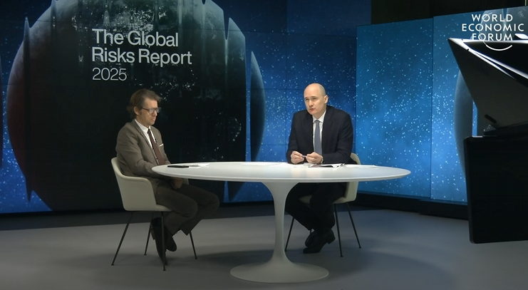 Image source: Screenshot from the “Launch of the Global Risks Report” with WEF Head of Media Yann Zopf (L) and WEF Managing Director Mirek Dušek (R)