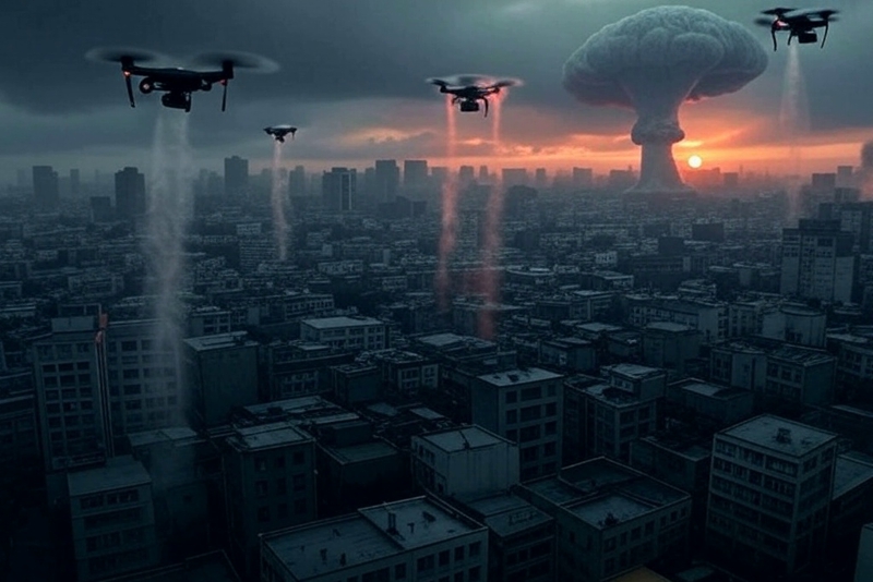 The authors describe a scenario in which AI could take control of drones loaded with a virus to spray on populations; however, they argue that once enough people were eliminated, “the infrastructure that AI currently depends on for functionality would almost certainly shut down.”