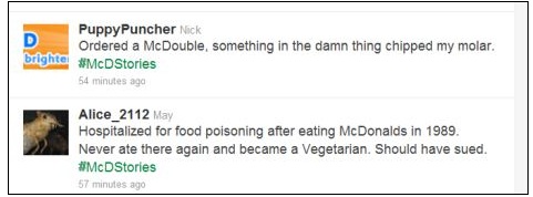 Speaking of burgers, McDonalds allowed people to have their tweets appear at the top of related search results. However, there was clearly no quality control mechanism in place as most people took to insulting the brand and talked about their own negative experiences with the fast food restaurant chain.